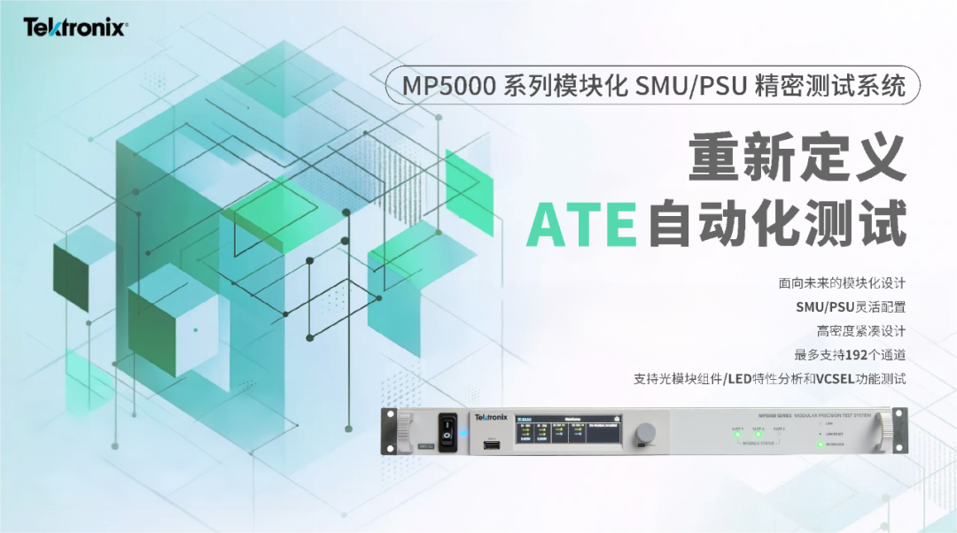 MP5000系列模块化精密测试系统重新定义ATE自动化测试,为验证与生产环境带来无与伦比的灵活性和扩展性。工程师可在1U机架内灵活组合精密源测量单元(SMU)与可编程电源单元(PSU),每台主机最多可配置6个通道,并支持最多32台主机并联,满足高通量、多站点测试需求。